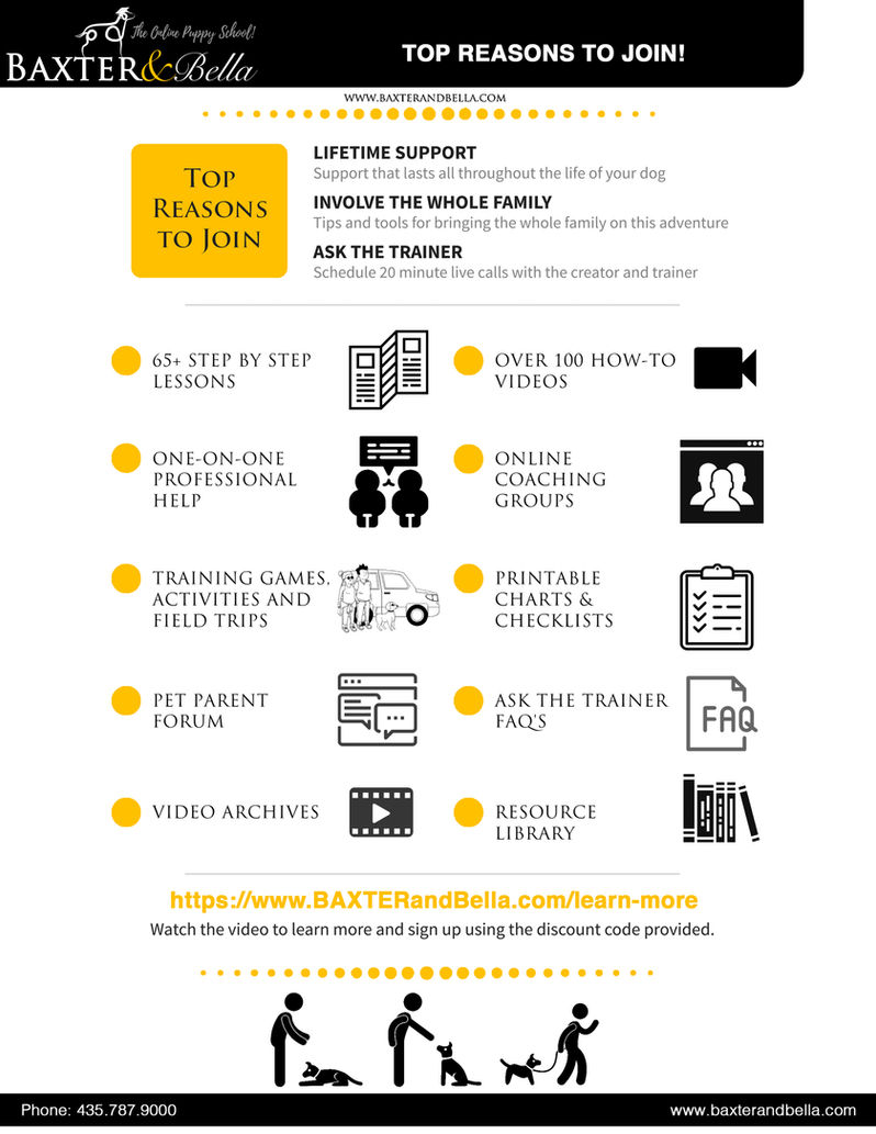 Recognizing the importance of training and wanting to help you get started in the right direction as quickly as possible, we have partnered with BAXTER & Bella to provide discounted lifetime access to their exclusive MEMBERS ONLY online puppy school, including all the training resources you will ever need, leading to better animal ownership and the very best in canine companionship!